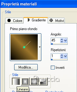 Passa il colore di primo piano a Gradiente di primo piano/sfondo, stile lineare, con i seguenti settaggi:
