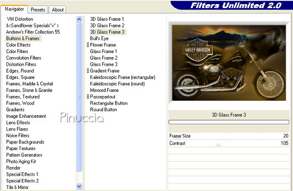 Effetti>Plugins>Filters Unlimited 2.0 - Buttons & Frames - 3d Glass Frame 3: