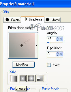 Passa il colore di primo piano a Gradiente di primo piano/sfondo con i seguenti settaggi: