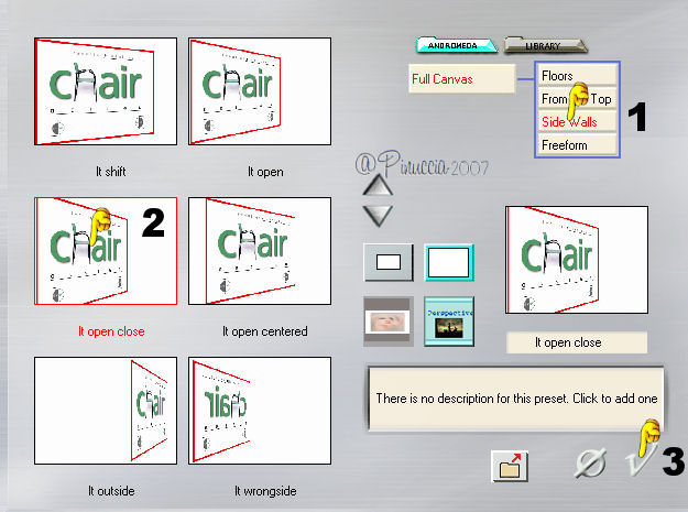 qui seleziona Side walls (1), poi lt open close (2), quindi clicca sul segno di spunta (3) per applicare il filtro: