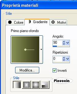 Passa il colore di primo piano a Gradiente di primo piano/sfondo con i seguenti settaggi: