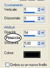 Effetti>Effetti 3D>Sfalsa ombra, con i seguenti settaggi.
