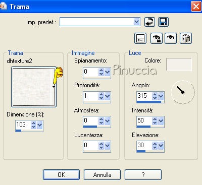 apri il menu cliccando sulla freccia indicata dalla manina e selezione dhtexture2.jpg, con i seguenti settaggi: