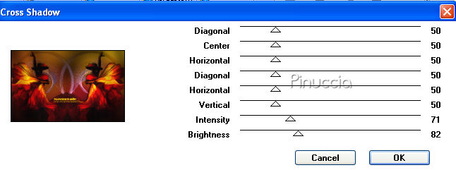 Effetti>Plugins>Graphics Plus - Cross Shadow, con i seguenti settaggi.