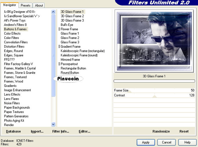 Effetti>Plugins>Filters Unlimited - Buttons & Frames - 3D Glass Frame 1.