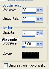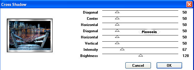 Effetti>Plugins>Graphics Plus - Cross Shadow, con i seguenti settaggi: