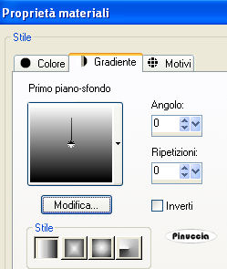 Passa il colore di primo piano a Gradiente con i seguenti settaggi.