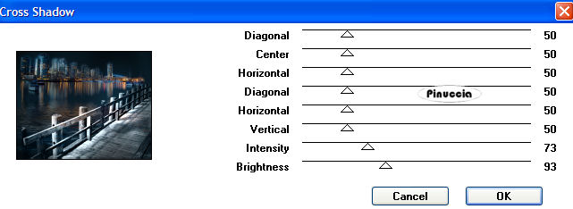 Effetti>Plugins>Graphics Plus - Cross Shadow, con i seguenti settaggi.