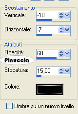 Effetti>Effetti 3D>Sfalsa ombra, con i seguenti settaggi: