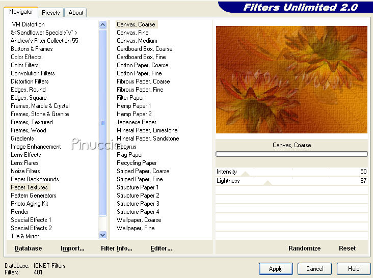 Effetti>Plugins>Filter Unlimited 2.0 - Paper Textures - Canvas Coarse.
