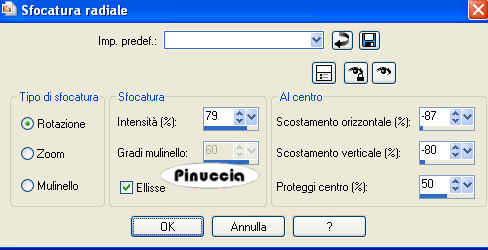 Regola>Sfocatura>Sfocatura radiale, con i seguenti settaggi.