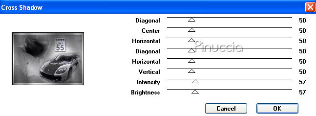 Effetti>Plugins>Graphics Plus - Cross Shadow, con i seguenti settaggi: