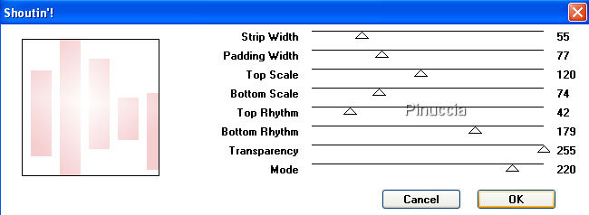 Effetti>Plugins>Filters Factory Gallery D - Shoutin', con i seguenti settaggi: