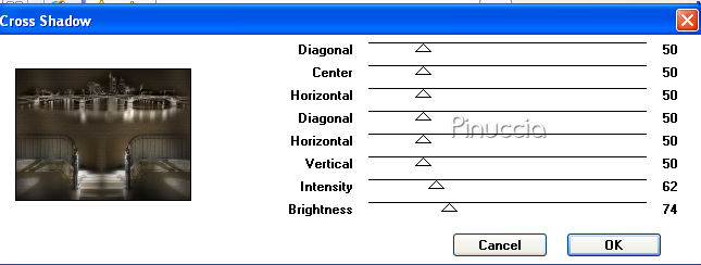 3. Effetti>Plugins>Graphics Plus - Cross Shadow, con i seguenti settaggi.