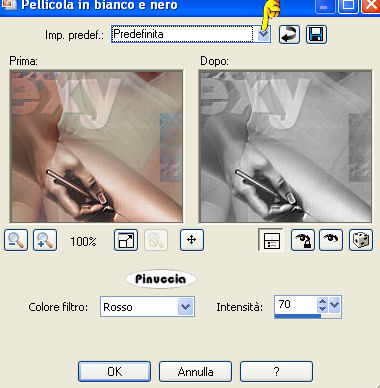 Effetti>Effetti di foto>Pellicola in bianco e nero, con i settaggi standard.