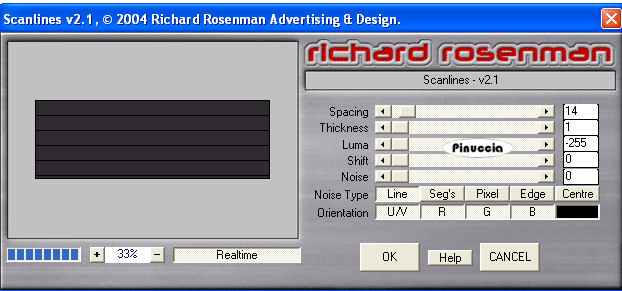 Effetti>Plugins>Richard Rosenman - Scanlines, con i settaggi precedenti.