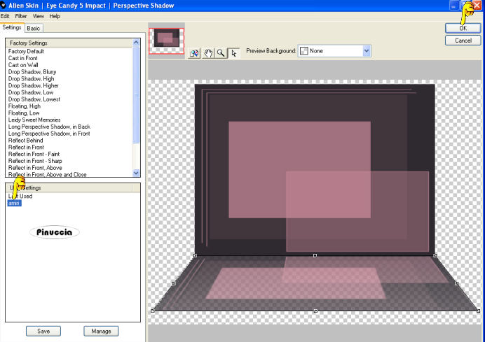 Effetti>Plugins>Eye Candy Impact - Perspektive Shadow,