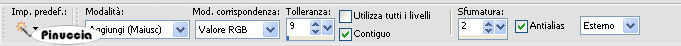 Attiva lo strumento Bacchetta magica con i seguenti settaggi.