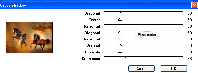 Effetti>Plugins>Graphics Plus - Cross Shadow, con i seguenti settaggi: