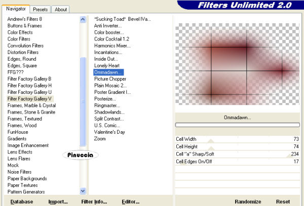 Effetti>Plugins>Filters Unlimited 2.0 - Filters Factory Gallery V - Ommadawn, con i seguenti settaggi: