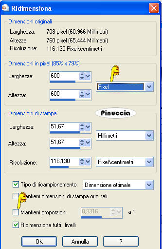 Immagine>Ridimensiona: 600 x 600 pixels, mantieni proporzioni non selezionato: