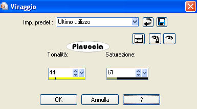 Regola>Tonalità e Saturazione>Viraggio, con i seguenti settaggi.