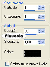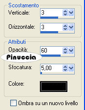 Effetti>Effetti 3D>Sfalsa ombra, con i seguenti settaggi, colore nero.