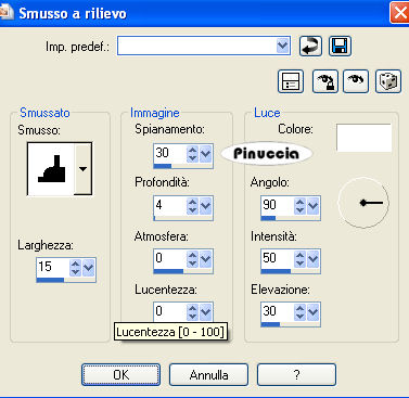 Effetti>Effetti 3D>Smusso a rilievo, con i seguenti settaggi: