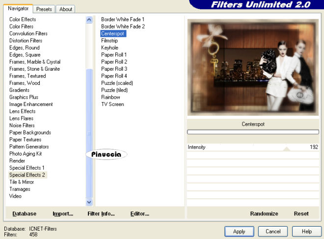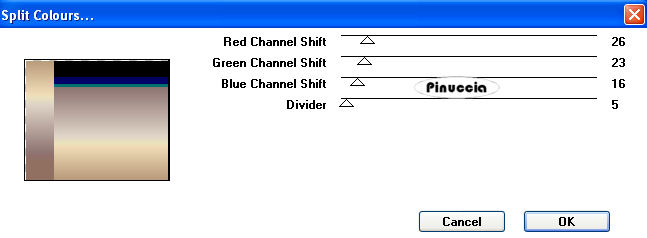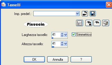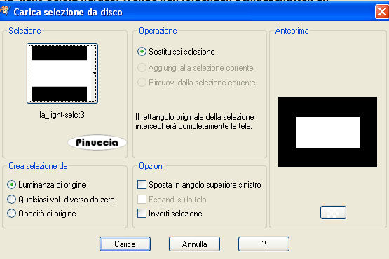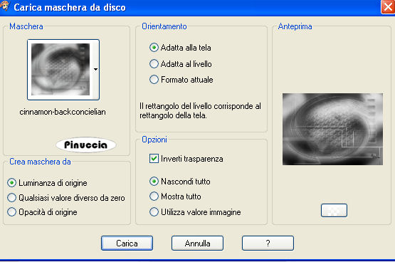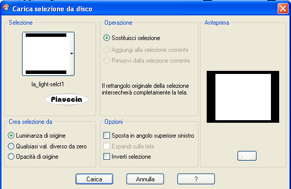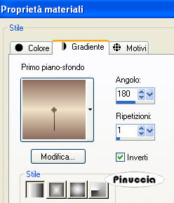 qui puoi trovare qualche risposta ai tuoi dubbi. Se l'argomento che ti interessa non è presente, ti prego di segnalarmelo. Questo tutorial è stato scritto con PSP X2, ma può essere eseguito anche con le altre versioni di PSP. Il copyright del tutorial appartiene a Laguna Azul. Il copyright della traduzione è mio. Il copyright dei tubes e delle immagini è dei rispettivi artisti. Per favore, rispetta il lavoro degli autori. Occorrente: Materiale qui FiltrI: AAA Filter - Good Vibration qui Graphics Plus qui Penta.com qui Filters Unlimited 2.0 qui Andrew's Filter 10 qui Andrew's Filter 62 qui I filtri Andrew's devono essere convertiti. Come fare vedi qui. Si usano importati in Filters Unlimited (come importare i filtri in Unlimited vedi qui) ma possono funzionare anche da soli. Metti la maschera nella cartella Maschere. Metti le selezioni nella cartella Selezioni. 1. Apri una nuova immagine trasparente 750 x 538 pixels. Scegli dal tube un colore chiaro come colore di primo piano (#f0e2c8), e un colore scuro come colore di sfondo (#8d6d5e). Passa il colore di primo piano a Gradiente di primo piano/sfondo, con i seguenti settaggi. ![]() Riempi l'immagine trasparente con il gradiente.Effetti>Effetti di distorsione>Tasselli, con i seguenti settaggi: ![]() Effetti>Effetti di bordo>Aumenta. 2. Effetti>Effetti di distorsione>Coordinate polari. ![]() Effetti>Plugins>AAA Filters - Good Vibrations, con i seguenti settaggi: ![]() Livelli>Duplica. Immagine>Rifletti. Cambia la modalità di miscelatura di questo livello in Differenza, e abbassa l'opacità al 21%. 3. Livelli>Nuovo livello raster. Riempi con il colore di primo piano.Livelli>Carica/Salva maschera>Carica maschera da disco. Cerca e carica la maschera cinnamon-backconcielian, con i seguenti settaggi. ![]() Livelli>Unisci>Unisci gruppo. Cambia la modalità di miscelatura di questo livello in Indebolisci, e abbassa l'opacità all'80%. Apri l'immagine di sfondo "New York", e vai a Modifica>Copia. non chiuderla, perchè ti servirà ancora. Torna al tuo lavoro e vai a Modifica>Incolla come nuovo livello. Cambia la modalità di miscelatura di questo livello in Sovrapponi, e abbassa l'opacità al 60%. 4. Livelli>Nuovo livello raster. Selezione>Carica/Salva selezione>Carica selezione da disco. Cerca e carica la selezione la_light-selct1: ![]() Cambia i settaggi del gradiente mettendo la spunta a Inverti. ![]() Riempi la selezione con il gradiente.Mantieni selezionato. Effetti>Plugins>Andrews Filters 62 - Split Colours, con i seguenti settaggi, 2 volte: ![]() 5. Mantieni ancora selezionato. Effetti>Plugins>Andrews Filters 10 - Lean and Not so Mean, con i seguenti settaggi: ![]() Selezione>Deseleziona. Livelli>Duplica. Immagine>Rifletti. Cambia la modalità di miscelatura di questo livello in Moltiplica. Livelli>Unisci>Unisci giù. Cambia nuovamente la modalità di miscelatura di questo livello in Moltiplica. 6. Livelli>Nuovo livello raster. Selezione>Carica/Salva selezione>Carica selezione da disco. Cerca e carica la selezione la_light-selct2: ![]() Effetti>Effetti 3D>Sfalsa ombra, con i seguenti settaggi, colore nero. ![]() Selezione>Deseleziona. 7. Livelli>Nuovo livello raster. Imposta il colore di primo piano con il nero, e riempi il livello con questo colore.Cambia nuovamente il colore di primo piano con #f0e2c8. Effetti>Plugins>Penta.com - Jeans, con i seguenti settaggi: ![]() Cambia la modalità di miscelatura di questo livello in Filtra, e abbassa l'opacità al 32%. 8. Attiva nuovamente il file di sfondo "New York". Immagine>Ridimensiona all'80%, tutti i livelli non selezionato. Modifica>Copia. Torna al tuo lavoro e vai a Modifica>Incolla come nuovo livello. 9. Livelli>Nuovo livello raster. Selezione>Carica/Salva selezione>Carica selezione da disco. Cerca e carica la selezione la_light-selct3 heraus. ![]() Attiva il secondo livello dall'alto, e sposta lo sfondo nella selezione, pressappoco come nella schermata sotto:![]() Selezione>inverti. Premi sulla tastiera il tasto CANC .Di nuovo Selezione>inverti. Mantieni selezionato. Livelli>Duplica. Cambia la modalità di miscelatura di questo livello in Luce netta, e abbassa l'opacità al 72%. Mantieni ancora selezionato. Attiva il livello superiore. Selezione>Modifica>Espandi - 3 pixels. Riempi con il colore di sfondo.Selezione>modifica>Contrai - 3 pixels. Premi sulla tastiera il tasto CANC. Selezione>Deseleziona. 10. Effetti>effetti 3D>Sfalsa ombra, con i seguenti settaggi, colore nero: ![]() Cambia la modalità di miscelatura di questo livello in Moltiplica. 11. Apri il tube @nn_130408_models_diorfashion1_2008_tdstudio_small, e vai a Modifica>copia. Torna al tuo lavoro e vai a Modifica>Incolla come nuovo livello. Sposta il tube a destra, come nell'esempio.![]() Effetti>Effetti 3D>Sfalsa ombra, con i seguenti settaggi, colore nero. ![]() 12. Livelli>Nuovo livello raster. Selezione>Carica/Salva selezione>Carica selezione da disco. Cerca e carica la selezione la_light-selct4. ![]() Riempi la selezione con il precedente gradiente.Effetti>Effetti 3D>sfalsa ombra, con i settaggi usati al punto 6. ![]() Cambia la modalità di miscelatura di questo livello in Moltiplica. 13. Apri il tube Yoka_JdL-Squares-and-lines2, e vai a Modifica>Copia. Torna al tuo lavoro e vai a Modifica>Incolla come nuovo livello. Sposta il tube nell'angolo in basso a sinistra.Effetti>Effetti 3D>Sfalsa ombra, con i seguenti settaggi, colore nero: ![]() 14. Apri il tube key2, e vai a Modifica>copia. Torna al tuo lavoro e vai a Modifica>Incolla come nuovo livello. Immagine>Ridimensiona, al 70%, tutti i livelli non selezionato. Regola>Messa a fuoco>Metti a fuoco. Sposta la chiave sulla striscia chiara a sinistra.Livelli>Duplica. Cambia la modalità di miscelatura di questo livello in Luce netta. Attiva il secondo livello dall'alto. Effetti>Effetti 3D>Sfalsa ombra, con i seguenti settaggi, colore nero. ![]() Livelli>Unisci>Unisci tutto. 15. Immagine>Aggiungi bordatura, 1 pixel, simmetriche, con il colore nero. Immagine>Aggiungi bordat