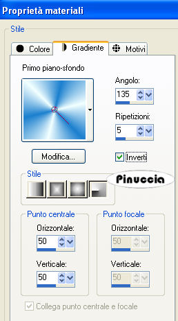 Imposta il colore di primo piano a Gradiente di primo piano/sfondo, con i seguenti settaggi: