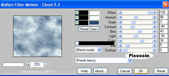 Effetti>Plugins>Mura's Meister - Cloud, con i seguenti settaggi: