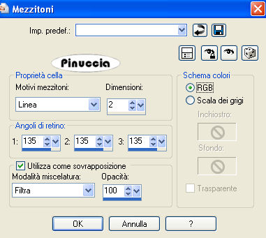 Effetti>Effetti artistici>Mezzitoni, con i seguenti settaggi: