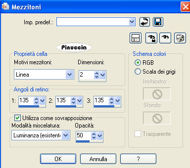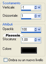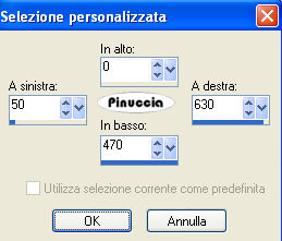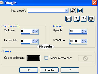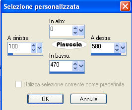 qui puoi trovare qualche risposta ai tuoi dubbi. Se l'argomento che ti interessa non è presente, ti prego di segnalarmelo. Questo tutorial è stato scritto con PSP 9, ma può essere eseguito anche con le altre versioni di PSP. Il copyright del tutorial appartiene a Laguna Azul. Il copyright della traduzione è mio. Il copyright dei tubes e delle immagini è dei rispettivi artisti. Per favore, rispetta il lavoro degli autori. Occorrente: Materiale qui Filtro: Filters Unlimited 2.0 qui 1. Apri una nuova immagine trasparente 680 x 470 pixels. Selezione>Seleziona tutto. Apri l'immagine di sfondo clarey_vintage_paper2, e vai a Modifica>Copia. Torna al tuo lavoro e vai a Modifica>Incolla>Incolla nella selezione. Selezione>Nessuna selezione. 2. Attiva lo strumento Selezione (sulla tastiera il tasto S).Clicca sull'icona Selezione personalizzata ![]() e imposta i seguenti settaggi: ![]() Livelli>Nuovo livello raster. Apri l'immagine di sfondo clarey_vintage_paper5, e vai a Modifica>Copia. Torna al tuo lavoro e vai a Modifica>Incolla>Incolla nella selezione. Selezione>Nessuna selezione. Cambia la modalità di miscelatura di questo livello in Luce netta. 3. Apri il tube a-dozi's-lace-small-stripes-01, e vai a Modifica>Copia. Torna al tuo lavoro e vai a Modifica>Incolla>Incolla come nuovo livello. Spostalo a sinistra sullo sfondo chiaro.Cambia la modalità di miscelatura di questo livello in Luminanza (Esistente). Livelli>Duplica. Immagine>Rifletti. 4. Attiva lo strumento Selezione ,selezione personalizzata con i seguenti settaggi:![]() Livelli>Nuovo l ivello raster. Apri l'immagine di sfondo clarey_vintage_paper1. Livelli>Innalza livello di sfondo. Effetti>Plugins>Filters Unlimited 2.0 - Edges, Square - Square Edge 04. Modifica>Copia. Torna al tuo lavoro e vai a Modifica>Incolla>Incolla nella selezione. Selezione>Nessuna selezione. Effetti>Effetti 3D>Sfalsa ombra, con i seguenti settaggi, colore nero. ![]() Ripeti l'Effetto Sfalsa ombra, ma cambiando verticale e orizzontale con -2. 5. Apri il tube mc672 e vai a Modifica>copia. Torna al tuo lavoro e vai a Modifica>Incolla>Incolla come nuovo livello. Spostalo un po' più a sinistra in modo che il cavallo a destra rimanga all'interno dello sfondo.Attiva il secondo livello dall'alto. Selezione>Seleziona tutto. Selezione>Mobile. Selezione>Inverti. Attiva il livello superiore. Premi sulla tastiera il tasto CANC ![]() Selezione>Nessuna selezione. Cambia la modalità di miscelatura di questo livello in Moltiplica. Livelli>Duplica. Cambia la modalità di miscelatura di questo livello in Luce diffusa. 6. Apri il tube MissVivi_HomeSweetHome_Couture01, e vai a Modifica>Copia. Torna al tuo lavoro e vai a Modifica>Incolla>Incolla come nuovo livello. Spostalo come nell'esempio.![]() Effetti>Effetti 3D>Sfalsa ombra, con i seguenti settaggi, colore nero: ![]() Livelli>Duplica. Immagine>Rifletti. 7. Apri il tube clarey_vintage_tag2, e vai a Modifica>Copia. Torna al tuo lavoro e vai a Modifica>Incolla>Incolla come nuovo livello. Immagine>Ridimensiona, al 50%, tutti i livelli non selezionato. Attiva lo strumento Deformazione (tasto D sulla tastiera),e ruota leggermente l'etichetta a sinistra: ![]() Regola>Messa a fuoco>Metti a fuoco. Effetti>Effetti 3D>Sfalsa ombra, con i settaggi usati al punto 4. Sposta l'etichetta a sinistra, come nel mio esempio.8. Apri il tube clarey_vintage_knottedribbon1, e vai a Modifica>copia. Torna al tuo lavoro e vai a Modifica>Incolla>Incolla come nuovo livello. Immagine>Ridimensiona, all'80%, tutti i livelli non selezionato. Regola>Messa a fuoco>Metti a fuoco. Effetti>Effetti 3D>Sfalsa ombra, con i settaggi usati al punto 6. Sposta il nastro in basso.9. Apri il tube clarey_vintage_brad, e vai a Modifica>Copia. Torna al tuo lavoro e vai a Modifica>Incolla>Incolla come nuovo livello. Immagine>Ridimensiona, al 50%, tutti i livelli non selezionato. Regola>Messa a fuoco>Metti a fuoco. Effetti>Effetti 3D>Sfalsa ombra, con i settaggi precedenti. Spostalo in alto a destra sullo sfondo chiaro.Livelli>Duplica. Spostalo in basso a sinistra, sullo sfondo chiaro.10. Apri il tube clarey_vintage_twistedribbon, e vai a Modifica>Copia. Torna al tuo lavoro e vai a Modifica>Incolla>Incolla come nuovo livello. Immagine>Ridimensiona, al 50%, tutti i livelli non selezionato. Regola>Messa a fuoco>Metti a fuoco. Effetti>Effetti 3D>Sfalsa ombra, con i settaggi precedenti. Spostalo nell'angolo in alto a destra.![]() Livelli>Duplica. Immagine>Rifletti. 11. Apri il tube horseshoe _la, e vai a Modifica>Copia. Torna al tuo lavoro e vai a Modifica>Incolla>Incolla come nuovo livello. Spostalo nell'angolo in alto a destra.Apri il tube clarey_vintage_flower1, e vai a Modifica>Copia. Torna al tuo lavoro e vai a Modifica>Incolla>Incolla come nuovo livello. Immagine>Ridimensiona, all'80%, tutti i livelli non selezionato. Regola>Messa a fuoco>Metti a fuoco. Effetti>Effetti 3D>Sfalsa ombra, con i settaggi precedenti. Spostalo nell'angolo in alto a sinistra.![]() 12. Apri il tube cowboy_la, e vai a Modifica>Copia. Torna al tuo lavoro e vai a Modifica>Incolla>Incolla come nuovo livello. Immagine>Ridimensiona, all'80%, tutti i livelli non selezionato. Effetti>Effetti 3D>Sfalsa ombra, con i seguenti settaggi, colore nero: ![]() Spostalo nell'angolo in basso a destra:![]() 13. Apri il tube clarey_vintage_fastner, e vai a Modifica>Copia. Torna al tuo lavoro e vai a Modifica>Incolla>Incolla come nuovo livello. Immagine>Ridimensiona, al 40%, tutti i livelli non selezionato. Regola>Messa a fuoco>Metti a fuoco. Effetti>Effetti 3d>Sfalsa ombra, con i settaggi usati al punto 4. Spostalo nell'angolo in alto a destra.Attiva lo strumento Deformazione (sulla tastiera tasto D),e ruotalo come nell'esempio. ![]() 14. Apri il tube clarey_vintage_libraryplate, e vai a Modifica>copia. Torna al tuo lavoro e vai a Modifica>Incolla>Incolla come nuovo livello. Immagine>Ruota>Ruota per gradi - 90 gradi a destra: ![]() Immagine>Ridimensiona, al 20%, tutti i livelli non selezionato. Regola>Messa a fuoco>