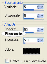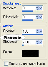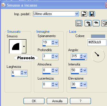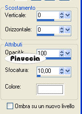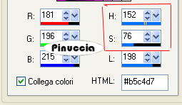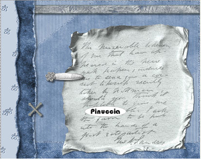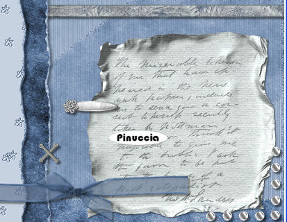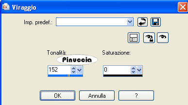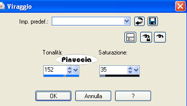 qui puoi trovare qualche risposta ai tuoi dubbi. Se l'argomento che ti interessa non è presente, ti prego di segnalarmelo. Questo tutorial è stato scritto con PSP X, ma può essere eseguito anche con le altre versioni di PSP. Il copyright del tutorial appartiene a Laguna Azul. Il copyright della traduzione è mio. Il copyright dei tubes e delle immagini è dei rispettivi artisti. Per favore, rispetta il lavoro degli autori. Occorrente: Materiale qui Metti il pennello nella cartella dei Pennelli. Per averlo disponibile in PSP, usa l'importazione (File>Importa>Pennello personalizzato...). vedi i miei appunti sui pennelli qui Apri il font e minimizzalo nella tua area di lavoro. Lo troverai nella lista dei font disponibili, quando ti servirà. 1. Apri una nuova immagine trasparente 700 x 554 pixels. Apri lo scrapkit "gwyn_kit19". Posizionati sul livello Raster 6, e vai a Modifica>Copia. Torna alla tua immagine trasparente e vai a Modifica>Incolla come nuovo livello. Scegli dal tube un colore non troppo scuro. Io ho scelto #b5c4d7. 2. Prendi nota dei valori di saturazione e tonalità: ![]() Da questo momento, per colorizzare i vari elementi dello scrap, il valore di tonalità rimarrà sempre lo stesso. Cambierà soltanto il valore di Saturazione. Regola>Saturazione>Tonalità>Viraggio, con i seguenti settaggi: ![]() 3. Apri il tube Golden_Dreams_Tag_Kit_By_Josy-Overlay, Colorizzalo e spostalo contro il bordo superiore.![]() 4. Attiva lo scrapkit "gwyn_kit19". Posizionati sul livello Raster 9, e vai a Modifica>Copia. Torna al tuo lavoro e vai a Modifica>Incolla come nuovo livello. ![]() 5. Livelli>Nuovo livello raster. Attiva lo strumento Pennello (o premi sulla tastiera il tasto B)cerca e seleziona il pennello "Handwriting 06", e applicalo sulla carta bianca. 6. Attiva lo scrapkit "gwyn_kit19". Posizionati sul livello Raster 20, e vai a Modifica>Copia. Torna al tuo lavoro e vai a Modifica>Incolla come nuovo livello. Regola>Saturazione e tonalità>Viraggio, con la tonalità a 0: ![]() Sposta la clip come nell'esempio:![]() Effetti>Effetti 3D>Sfalsa ombra, con i seguenti settaggi, colore nero: ![]() 7. Attiva lo scrapkit "gwyn_kit19". Posizionati sul livello Raster 10, e vai a Modifica>Copia. Torna al tuo lavoro e vai a Modifica>Incolla come nuovo livello. Sposta la striscia in alto, lasciando circa un centimetro dal bordo.Effetti>Effetti 3D>Sfalsa ombra, con i settaggi precedenti. 8. Attiva lo scrapkit "gwyn_kit19". Posizionati sul livello Raster 2, e vai a Modifica>Copia. Torna al tuo lavoro e vai a Modifica>Incolla come nuovo livello. Colorizza, cambiando il valore della Tonalità a 72. Spostalo sul lato sinistro.![]() Attiva lo scrapkit "gwyn_kit19". Posizionati sul livello Raster 13, e vai a Modifica>Copia. Torna al tuo lavoro e vai a Modifica>Incolla come nuovo livello. Effetti>Effetti 3D>Sfalsa ombra, con i settaggi precedenti. Posizionalo sul bordo della striscia sinistra.![]() 9. Attiva lo scrapkit "gwyn_kit19". Posizionati sul livello Raster 3, e vai a Modifica>Copia. Torna al tuo lavoro e vai a Modifica>Incolla come nuovo livello. Sposta la striscia a sinistra, lasciando all'interno 1-2 cm.![]() Effetti>Effetti 3D>Sfalsa ombra, con i settaggi precedenti. 10. Apri il tube "Corner" e vai a Modifica>Copia. Torna al tuo lavoro e vai a Modifica>Incolla come nuovo livello. Spostalo nell'angolo in basso a destra.Effetti>Effetti 3D>sfalsa ombra, con i settaggi precedenti. 11. Attiva lo scrapkit "gwyn_kit19". Posizionati sul livello Raster 11, e vai a Modifica>Copia. Torna al tuo lavoro e vai a Modifica>Incolla come nuovo livello. Colorizza, impostando la tonalità a 72. Sposta il nastro in basso a sinistra.Effetti>Effetti 3D>Sfalsa ombra, con i settaggi precedenti. ![]() 12. Attiva lo scrapkit "gwyn_kit19". Posizionati sul livello Raster 19, e vai a Modifica>Copia. Torna al tuo lavoro e vai a Modifica>Incolla come nuovo livello. Colorizza, impostando la tonalità a 80. Effetti>Effetti 3D>Sfalsa ombra, con i settaggi precedenti. Sposta questo nastro in alto a destra, vedi il mio esempio.13. Apri il tube chrismist_flw1547597, e vai a Modifica>Copia. Torna al tuo lavoro e vai a Modifica>Incolla come nuovo livello. Sposta questo tube a sinistra, come nel mio esempio.![]() Cambia la modalità di miscelatura di questo livello in Luce diffusa. 14. Attiva lo scrapkit "gwyn_kit19". Posizionati sul livello Raster 21, e vai a Modifica>Copia. Torna al tuo lavoro e vai a Modifica>Incolla come nuovo livello. Immagine>Ridimensiona, al 70%, tutti i livelli non selezionato. Attiva lo strumento Puntatore , o premi il tasto D sulla tastiera.Se stai usando PSP 9, strumento Deformazione ![]() e ruota leggermente la targhetta. Regola>Messa a fuoco>Metti a fuoco. Colorizza, cambiando il valore di tonalità con 35. Posizionalo in alto a sinistra.Effetti>Effetti 3d>Sfalsa ombra, con i settaggi precedenti. Attiva lo strumento Testo ![]() e scrivi il tuo nome (o quello che preferisci) sulla targhetta. Puoi usare i colori e il font che preferisci. Io ho usato il font DearJoe Four, con i seguenti settaggi: ![]() Scrivi il tuo testo e posizionalo sulla targhetta. Livelli>Converti in livello raster. Effetti>Effetti 3D>Sfalsa ombra, con i seguenti settaggi, colore bianco. ![]() 15. Attiva lo scrapkit "gwyn_kit19". Posizionati sul livello Raster 12, e vai a Modifica>Copia. Torna al tuo lavoro e vai a Modifica>Incolla come nuovo livello. Colorizza, con il valore di Tonalità a 0, e posiziona la spilla sulla targhetta:![]() Effetti>Effetti 3D>Sfalsa ombra, con i settaggi usati al punto 6. ![]() 16. Attiva lo scrapkit "gwyn_kit19". Posizionati sul livello Raster 17, e vai a Modifica>Copia. Torna al tuo lavoro e vai a Modifica>Incolla come nuovo livello. colorizza e premi sulla tastiera il tasto D, per ruotare leggermente lo spillo. Regola>Messa a fuoco>Accentua messa a fuoco. Sposta lo spillo come nel mio esempio.![]() Effetti>Effetti 3D>Sfalsa ombra, con i settaggi precedenti. 17. Apri il tube jet_woman8_augustus_2007 e vai 