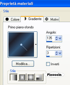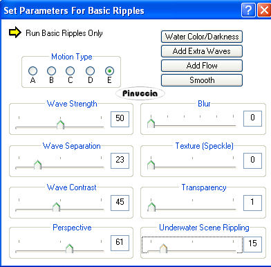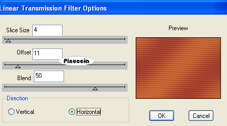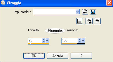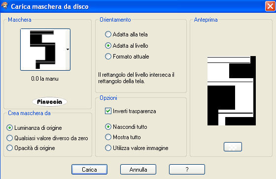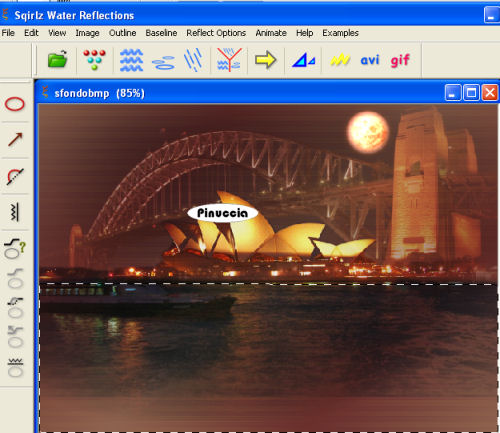 qui puoi trovare qualche risposta ai tuoi dubbi. Se l'argomento che ti interessa non è presente, ti prego di segnalarmelo. Questo tutorial è stato scritto con PSP 9, ma può essere eseguito anche con le altre versioni di PSP. Il copyright del tutorial appartiene a Laguna Azul. Il copyright della traduzione è mio. Il copyright dei tubes e delle immagini è dei rispettivi artisti. Per favore, rispetta il lavoro degli autori. Occorrente: Materiale qui Ulead Gif Animator 5.0 (demo) qui Sqirlz Reflections qui se non hai Gif Animator puoi usare Animation Shop qui Filters Unlimited 2.0 qui Graphics Plus qui FM Tile Tools qui Screenworks qui Xero - Fritillary qui Xero - Fuzzifier qui Metti la maschera nella cartella Maschere. 1. Apri una nuova immagine trasparente 670 x 480 pixels. Imposta il colore di primo piano con #d37536, e il colore di sfondo con #97342d. Passa il colore di primo piano a Gradiente di primo piao/sfondo, con i seguenti settaggi: ![]() Riempi l'immagine trasparente con il gradiente.Regola>Sfocatura>Sfocatura gaussiana, raggio 30. ![]() Livelli>Duplica. Chiudi questo livello e attiva il livello inferiore. 2. Livelli>Nuovo livello raster. Imposta il colore di primo piano con #335577, e il colore di sfondo con #1f1f28. Passa il colore di primo piano a Gradiente di primo piano/sfondo, con i settaggi usati al punto 1. ![]() Riempi il livello con questo gradiente.Abbassa l'opacità di questo livello al 50%. Attiva il livello superiore e rendilo nuovamente visibile. Effetti>Plugins>DSB Flux - Linear Trasmission, con i seguenti settaggi: ![]() Effetti>Effetti di bordo>Aumenta. Abbassa l'opacità di questo livello al 18%. 3. Apri il tube sydney 3, e vai a Modifica>Copia. Torna al tuo lavoro e vai a Modifica>Incolla>Incolla come nuovo livello. Immagine>Ridimensiona, al 55%, tutti i livelli non selezionato. Spostalo completamente in alto, in modo che i bordi superiore e sinistro, combacino con i bordi del tuo lavoro.Cambia la modalità di miscelatura di questo livello in Luce netta, e abbassa l'opacità al 52%. 4. Apri il tube sydney oper, e vai a Modifica>Copia. Torna al tuo lavoro e vai a Modifica>Incolla>Incolla come nuovo livello. Immagine>Ridimensiona, al 50%, tutti i livelli non selezionato. Spostalo come nell'esempio.![]() Cambia la modalità di miscelatura di questo livello in Luce netta, e abbassa l'opacità al 90%. 5. Apri il tube Wasser, e vai a Modifica>Copia. Torna al tuo lavoro e vai a Modifica>Incolla>Incolla come nuovo livello. Spostalo come nell'esempio.![]() Cambia la modalità di miscelatura di questo livello in Moltiplica. 6. Apri il tube k moon4, e vai a Modifica>Copia. Torna al tuo lavoro e vai a Modifica>Incolla>Incolla come nuovo livello. Regola>Saturazione e tonalità>Viraggio, con i seguenti settaggi: ![]() Immagine>Ridimensiona, al 30%, tutti i livelli non selezionato. Spostalo a destra sopra il ponte.Cambia la modalità di miscelatura di questo livello in Indebolisci, e abbassa l'opacità all'84%%. Livelli>Unisci>Unisci visibile. 7. Livelli>Nuovo livello raster. Attiva lo strumento Selezione ![]() clicca sull'icona Selezione personalizzata ![]() e imposta i seguenti settaggi: ![]() Riempi la selezione con il colore #754e40.Selezione>Nessuna selezione. Livelli>Carica/Salva maschera>Carica maschera da disco. Cerca e carica la maschera 0.0 la manu, con i seguenti settaggi: ![]() Livelli>Unisci>Unisci gruppo. 8. Effetti>Plugins>Xero - Fritillary, con i settaggi standard. ![]() Effetti>Effetti di bordo>Aumenta. Effetti>Effetti 3D>Sfalsa ombra, con i seguenti settaggi, colore nero: ![]() Cambia la modalità di miscelatura di questo livello in Luce netta, e abbassa l'opacità al 50%. Livelli>Duplica. Immagine>Rifletti. 9. Apri il tube weg, e vai a Modifica>copia. Torna al tuo lavoro e vai a Modifica>Incolla>Incolla come nuovo livello. Immagine>Ridimensiona, al 50%, tutti i livelli non selezionato. Spostalo nell'angolo in basso a sinistra, come nel mio esempio.Cambia la modalità di miscelatura di questo livello in Luminanza (Esistente), e abbassa l'opacità al 60%. Livelli>Duplica. Immagine>Rifletti. 10. Apri il tube hugh 13, e vai a Modifica>Copia. Torna al tuo lavoro e vai a Modifica>Incolla>Incolla come nuovo livello. Immagine>Ridimensiona, al 60%, tutti i livelli non selezionato. Regola>Messa a fuoco>Accentua messa a fuoco. Spostalo completamente in alto, in modo che i bordi inferiore e destro, combacino con i bordi del tuo lavoro.Livelli>Duplica. Attiva il secondo livello dall'alto. Effetti>Effetti di distorsione>Vento, con i seguenti settaggi: ![]() Cambia la modalità di miscelatura di questo livello in Esclusione, e abbassa l'opacità al 74%. Attiva il livello superiore. Effetti>Effetti 3D>sfalsa ombra, con i settaggi precedenti. ![]() 11. Apri il tube hugh 14, e vai a Modifica>Copia. Torna al tuo lavoro e vai a Modifica>Incolla>Incolla come nuovo livello. Spostalo nell'angolo in alto a sinistra.Effetti>Plugins>FM Tile Tools - Blend Emboss, con i settaggi standard. ![]() Abbassa l'opacità di questo livello all'80%. Effetti>Effetti 3D>Sfalsa ombra, con i settaggi precedenti. 12. Apri il tube fire, e vai a Modifica>Copia. Torna al tuo lavoro e vai a Modifica>Incolla>Incolla come nuovo livello. Immagine>Ridimensiona, al 50%, tutti i livelli non selezionato. Spostalo nell'angolo in basso a sinistra.Cambia la modalità di miscelatura di questo livello in Filtra, e abbassa l'opacità al 50%. 13. Apri il tube kiss, e vai a Modifica>Copia. Torna al tuo lavoro e vai a Modifica>Incolla>Incolla come nuovo livello. Immagine>Ridimensiona, al 50%, tutti i livelli non selezionato. Cambia la modalità di miscelatura di questo livello in Luminanza (Esistente), e abbassa l'opacità al 74%. Attiva il quarto livello dall'alto, e trascinalo tenendo premuto il tasto sinistro del mouse in cima alla lista dei livelli: (puoi anche andare a Livelli>Disponi>Porta in alto). ![]() 14. Attiva il livello inferiore (Uniti) e vai a Modifica>Copia (Ctrl+C). minimizza l'immagine, che ripr