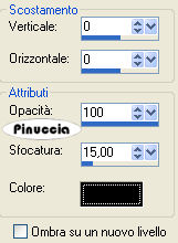 Effetti>Effetti 3D>Sfalsa ombra, con i seguenti settaggi, colore nero.