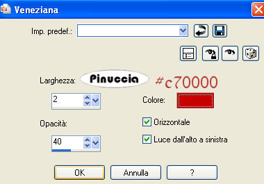 Effetti>Effetti di trama>Veneziana, con i seguenti settaggi.