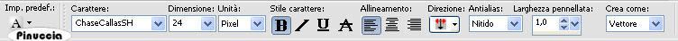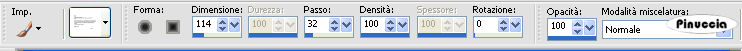 ![]() 42. Imposta entrambi i colori di primo piano e sfondo con un colore scelto dal tube. Per il mio esempio: #900000. ![]() 43. Di nuovo strumento Testo ![]() font ChaseCallasSH, dimensione 24, crea come vettore, crenatura 700: ![]() ![]() 44. Clicca all'inizio della piccola striscia sopra l'immagine di sfondo, e digita 7 punti: ![]() se i punti non rimangono correttamente posizionati, sistema la posizione come nell'esempio). 45. Livelli>Converti in livello raster. 46. Effetti>Effetti 3D>sfalsa ombra, con i settaggi precedenti. 47. Livelli>Unisci>Unisci tutto. 48. Effetti>Plugins>Xero - Porcelain, con i seguenti settaggi. ![]() 49. Apri il tube Yoka-Fashiontube121206 (altezza=532 pixels) e vai a Modifica>Copia. 50. Torna al tuo lavoro e vai a Modifica>Incolla come nuovo livello. 51. Posiziona il tube come preferisci o vedi il mio esempio.52. Effetti>Effetti 3D>Sfalsa ombra, con i seuenti settaggi: ![]() 53. Immagine>Aggiungi bordatura, 1 pixels, simmetriche, con un colore scuro preso dall'immagine. Aggiungi il tuo nome e/o il tuo watermark e salva in formato jpg. Per gli sfondi. Sfondo 1. Attiva la copia dell'immagine che hai messo da parte al punto 8. ![]() 54. Livelli>Unisci>Unisci tutto. 55. Attiva lo strumento Ritaglio ![]() ![]() Doppio clic sul bordo per applicare il ritaglio o clicca sul segno Applica .56. Effetti>Effetti di immagine>Motivo unico: ![]() Salva in formato jpg. Sfondo 2. 57. Duplica lo sfondo 1 con shift+D sulla tastiera. 60. Regola>Sfocatura>Sfocatura gaussiana, raggio 3: ![]() 61. Effetti>Effetti di immagine>Motivo unico, con i settaggi precedenti. Salva in formato jpg. Il tube di questo esempio è di Azyzam. ![]() ![]() Se hai problemi o dubbi, o trovi un link non funzionante, o anche soltanto per dirmi che ti è piaciuto, .17 Settembre 2008 |