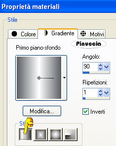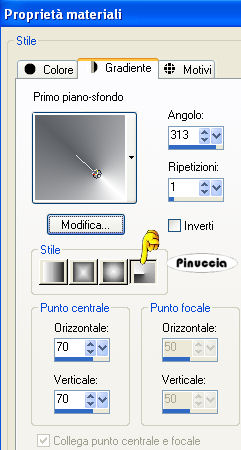 Passa il colore di primo piano a Gradiente, con i seguenti settaggi: