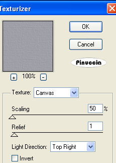 65. Effetti>Plugins>Texture - Texturizer, con i seguenti settaggi: