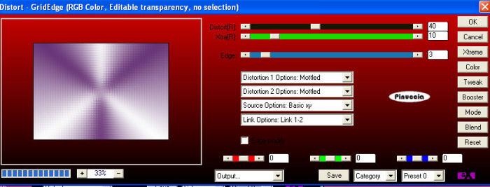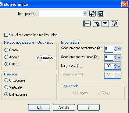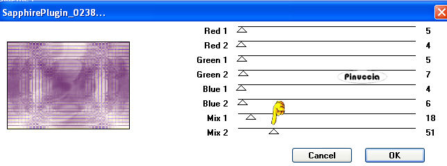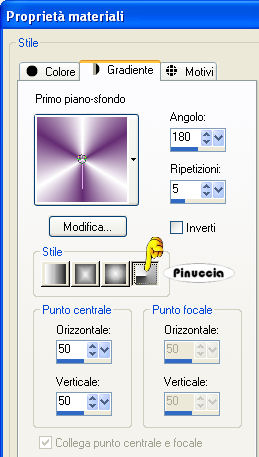qui puoi trovare qualche risposta ai tuoi dubbi. Se l'argomento che ti interessa non è presente, ti prego di segnalarmelo. Questo tutorial è stato scritto con PSP XI. Per tradurlo, ho usato PSP X. Occorrente: Materiale: Tube Marif_2007_03Mars_fleurs011 qui. grazie Marie F per il bel tube. Tube L&K_les_Pai-Lin_1b qui Tube 1614dwtubes qui. grazie Denise Worischw per il bel tube Tube Mtm_Lady_ 209_Pai-Lin-16 Maart 2007 qui. grazie Manon per il bel tube. Selezione "L&K selecties les Pai-lin" qui Pennelli "L&K brushes les Pai-lin" qui Metti i Pennelli nella cartella Pennelli. Metti la Selezione nella cartella Selezioni. Filtri: AP 16 (Power Blend) - Distort Grid Edge qui Sapphire filter 03 - SapphirePlugin_0238 qui Fotomatic - Skygrad qui Lidy ha creato per questo tutorial uno speciale script che trovi qui Grazie Lidy. Imposta il colore di primo piano con un colore scuro preso dal tube. Per il mio esempio: #652d73. Imposta il colore di sfondo con il bianco. Passa il colore di primo piano a Gradiente di primo piano-sfondo, stile Radiale, con i seguenti settaggi: ![]() 1. Apri una nuova immagine trasparente 700 x 500 pixels. 2. Riempi l'immagine trasparente con il gradiente.3. Regola>Sfocatura>Sfocatura gaussiana, raggio 20. ![]() 4. Effetti>Plugins>AP 16 (Power Blend) - Distort Grid Edge, e clicca ok. ![]() 5. Di nuovo: Effetti>Plugins>AP 16 (Power Blend) - Distort Grid Edge, seleziona le impostazioni 12, e clicca ok. ![]() 6. Effetti>Plugins>Sapphire filter 03 - SapphirePlugin _0238, con i seguenti settaggi: ![]() 7. Effetti>Plugins>Fotomatic - Skygrad trova un colore corrispondente alle tue immagini, questi i miei settaggi: ![]() 8. Livelli>Duplica. 9. Nella paletta dei livelli cambia la modalità di miscelatura di questo livello in Moltiplica. ![]() 10. Livelli>Unisci>Unisci tutto. 11. Regola>Morbidezza>Fuoco diffuso, con i seguenti settaggi: ![]() 12. Duplica l'immagine usando sulla tastiera la combinazione di tasti shift(maiuscola)+D, e metti da parte questa copia che potrà servirti, se vorrai realizzare lo script. Continua a lavorare sull'originale. 13. Riporta il colore di primo piano al colore scuro. ![]() 14. Livelli>Nuovo livello raster. 15. Selezione>Carica/Salva selezione>Carica selezione da disco. Cerca e carica la selezione L&K_les_Pai-Lin_1: ![]() Ingrandisci l'immagine il più possibile, attivando lo strumento zoom o ruotando la rotellina del mouse.16. Riempi le linee della selezione con il colore scuro.![]() ![]() 17. Selezione>Deseleziona. 18. Nella paletta dei materiali inverti i colori cliccando sulla freccia tra le due palette. ![]() 19. Attiva lo strumento Bacchetta magica ![]() ![]() e clicca al centro della selezione. ![]() 20. Livelli>Nuovo livello raster. 21. Riempi con il colore bianco.Mantieni selezionato. 22. Nella paletta dei livelli abbassa l'opacità di questo livello al 40%. 23. Effetti>Effetti 3D>Sfalsa ombra, con i seguenti settaggi. ![]() 24. Mantieni ancora selezionato. 25. Apri il tube del fiore Marif_2007_03Mars_fleurs011 (474x416), o uno dei tuoi tubes (in questo caso cerca di mantenere le stesse dimensioni). Modifica>Copia. 26. Torna al tuo lavoro e vai a Modifica>Incolla come nuovo LIVELLO. 27. Posiziona il tube sul lato sinistro della selezione.![]() 28. Selezione>Inverti. 29. Premi sulla tastiera il tasto CANC ![]() 30. Selezione>Deseleziona. 31. Nella paletta dei livelli abbassa l'opacità di questo livello tra il 20 e il 40% (dipende dal tube che stai usando). 32. Apri il tube 1614Denise Worischw tube (466x339), e vai a Modifica>Copia. 33. Torna al tuo lavoro e vai a Modifica>Incolla come nuovo livello. 34. Posiziona l'occhio nell'angolo in alto a destra.35. Nella paletta dei livelli abbassa l'opacità di questo livello intorno al 30% (eventualmente, a seconda del tube che stai usando, cambia la modalità di miscelatura come ti sembra meglio). ![]() 36. Apri L&K_les_Pai-Lin_1b e vai a Modifica>Copia. 37. Torna al tuo lavoro e vai a Modifica>Incolla come nuovo livello. 38. Sposta il tube in basso a sinistra, sopra il bordo.![]() 39. Nella paletta dei livelli cambia la modalità di miscelatura di questo livello in Luminanza (esistente). ![]() 40. Nella paletta dei materiali imposta il colore di primo piano con il colore scuro o anche con un colore diverso, per esempio nero: ![]() 41. Livelli>Nuovo livello raster. 42. Attiva lo strumento Pennello ![]() cerca e seleziona il pennello L&K_les_Pai-Lin_1: ![]() e applicalo come nell'esempio: ![]() 43. di nuovo strumento Pennello ![]() cerca e seleziona il pennello L&K_les_Pai-Lin_2: ![]() e applicalo come nell'esempio. ![]() 44. Livelli>Duplica. 45. Immagine>Capovolgi. 46. Immagine>Rifletti. ![]() 47. Livelli>Unisci>Unisci giù. 48. Effetti>Effetti 3D>sfalsa ombra, con i seguenti settaggi: ![]() 49. Livelli>Nuovo livello raster. 50. Di nuovo strumento Pennello ![]() cerca e seleziona il pennello L&K_les_Pai-Lin_3: ![]() e applicalo come nell'esempio: ![]() 51. Nella paletta dei livelli cambia la modalità di miscelatura di questo livello in Luce diffusa, (o nella modalità che ti sembra si adatti meglio ai tubes e ai colori che stai usando). ![]() 52. Livelli>Nuovo livello raster. 53. Di nuovo strumento Pennello ![]() cerca e seleziona il pennello L&K_les_Pai-Lin_4: ![]() e applicalo come nell'esempio: ![]() 54. Nella paletta dei livelli abbassa l'opacità di questo livello tra il 65 e l'85%. 55. Livelli>Nuovo livello raster. 56. Di nuovo strumento Pennello ![]() cerca e seleziona il pennello L&K_les_Pai-Lin_5: ![]() e applicalo come nell'esempio: ![]() Cambia la modalità di miscelatura di questo livello in Filtra. 57. Apri il tube Mtm_Lady_ 209_Pai-Lin-16 Maart 2007 e vai a Modifica>Copia. 58. Torna al tuo lavoro e vai a Modifica>incolla come nuovo livello. 59. Immagine>Ridimensiona, al 90%, tutti i livelli non selezionato. 60. Posiziona il tube come preferisci, o vedi il mio esempio.61. Effetti>Effetti 3D>sfalsa ombra, con i seguenti settaggi: ![]() 62. Immagine>Aggiungi bordatura, 1 pixel, simmetric