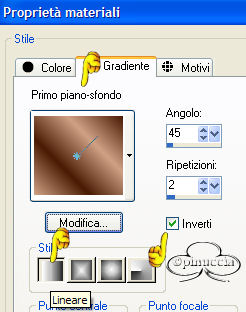 Passa il colore di primo piano a gradiente di primo piano/sfondo, lineare, con i seguenti settaggi: