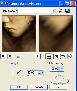 Regola>Sfocatura>Sfocatura da movimento, angolo 45, intensità 100.