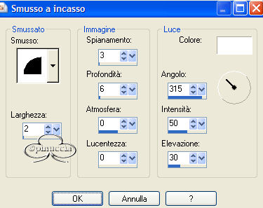 Effetti>Effetti 3D>Smusso a incasso, con i seguenti settaggi: