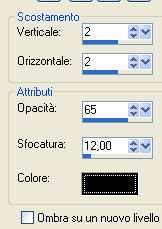 qui puoi trovare qualche risposta ai tuoi dubbi. Se l'argomento che ti interessa non è presente, ti prego di segnalarmelo. Occorrente: Materiale qui Apri i tubes in PSP e metti il pennello nella cartella dei pennelli. Scegli un colore scuro come colore di primo piano (io ho scelto #F1C934) e imposta il colore di sfondo con il bianco (#ffffff). Passa il colore di primo piano a gradiente di primo piano/sfondo, con i seguenti settaggi: ![]() Apri una nuova immagine trasparente 700 x 500 e riempila con il gradiente.Attiva l'immagine MD-makeup e vai a Modifica>Copia. Torna al tuo lavoro e vai a Modifica>Incolla>Incolla come nuovo livello. Spostala a destra.Livelli>Duplica. Attiva il livello inferiore del tube (il livello originale). Abbassa l'opacità di questo livello al 50%. Attiva il livello superiore. ![]() Attiva lo strumento Selezione , rettangolo, e traccia un rettangolo, come mostrato sotto:![]() Selezione>Inverti. Premi sulla tastiera una volta il tasto CANC. ![]() Effetti>Effetti 3D>Sfalsa ombra, con i seguenti settaggi, colore nero: ![]() Selezione>Nessuna selezione. Attiva il tube di Stephane e vai a Modifica>Copia. Torna al tuo lavoro e vai a Modifica>Incolla>Incolla come nuovo livello. Spostalo a sinistra.Livelli>Duplica. Come hai fatto per l'altro tube, abbassa l'opacità del livello inferiore al 50%. Ritorna sul livello superiore del tube e traccia un rettangolo intorno al tube.Selezione>Inverti. Premi sulla tastiera il tasto CANC. Effetti>Effetti 3D>Sfalsa ombra, con i seguenti settaggi, colore nero: ![]() Selezione>Nessuna selezione. Attiva lo strumento Pennello ,cerca e seleziona il pennello geometric09, Clicca due volte in basso a destra cliccando con il tasto destro del mouse, per applicare il pennello con il colore bianco di sfondo. ![]() Attiva il tube Tekstlabel e vai a Modifica>Copia. Torna al tuo lavoro e vai a Modifica>Incolla>Incolla come nuovo livello. Spostalo in basso a destra.Se vuoi, puoi aggiungere anche un altro testo a tua scelta. Livelli>Unisci>Unisci tutto. Immagine>Aggiungi bordatura, 2 pixels, simmetriche, con il colore bianco. Aggiungi la tua firma o il tuo watermark ed eventualmente ridimensiona la tag. ![]() Se hai problemi o dubbi, o trovi un link non funzionante, o anche soltanto per un saluto, scrivimi. 1 Marzo 2007 |