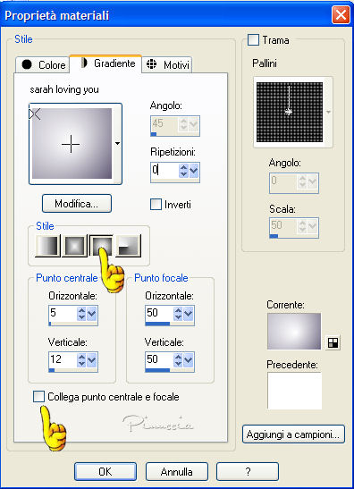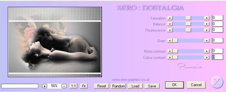 qui puoi trovare qualche risposta ai tuoi dubbi. Se l'argomento che ti interessa non è presente, ti prego di segnalarmelo. Occorrente: Materiale qui Filtri: FM Tile Tools qui Unlimited qui Xero - Nostalgia qui Metti il pennello nella cartella Pennelli di PSP. Metti il gradiente nella cartella gradienti. Metti la maschera nella cartella Maschere. Apri le immagini in PSP. 1. Apri una nuova immagine trasparente 600 x 450 pixels. Riempi l'immagine con il colore BIANCO.Imposta il colore di primo piano con il gradiente Sarahlovingyou e il colore di sfondo su NERO. ![]() 2. Livelli>Nuovo livello raster. Riempi il livello con il gradiente.3. Livelli>Carica/Salva maschera>Carica maschera da disco. Carica la maschera RMD grid masker1. ![]() 4. Selezione>Selezione da maschera. 5. Livelli>Unisci>Unisci gruppo. Mantieni selezionato. 6. Livelli>Nuovo livello raster. 7. Apri l'immagine valentineteards e vai a Modifica>Copia. Torna al tuo lavoro e vai a Modifica>Incolla>Incolla nella selezione. 8. Selezione>Nessuna selezione. 9. Nella paletta dei livelli abbassa l'opacità di questo livello al 36%. 10. Livelli>Unisci>Unisci tutto. 11. Effetti>Plugins>Unlimited - Paper texture, Canvas fine: ![]() 12. Apri il tube della coppia e vai a Modifica>Copia. Torna al tuo lavoro e vai a Modifica>Incolla>Incolla come nuovo livello. Sposta l'immagine a destra (vedi tag finale). 13. Livelli>Unisci>Unisci tutto. 14. Effetti>Plugins>FM Tile Tools - blend emboss, con i settaggi standard. ![]() 15. Effetti>Plugins>Xero - Nostalgia, con i seguenti settaggi: ![]() 16. Livelli>Nuovo livello raster. 17. Imposta il colore di primo piano con #bf9893. 18. Attiva lo strumento pennello e cerca il