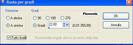 7. Immagine>Ruota per gradi, 22 gradi a sinistra, tutti i livelli selezionato.