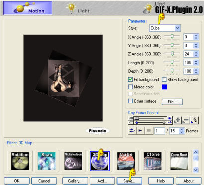 Seleziona prima l'Effetto 3D Map e poi dal menu Style "Cube", con i seguenti settaggi: