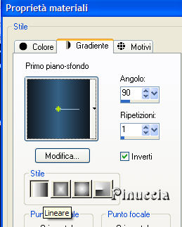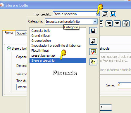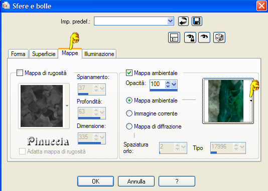 qui puoi trovare qualche risposta ai tuoi dubbi. Se l'argomento che ti interessa non è presente, ti prego di segnalarmelo. Materiale qui Il bel tube è di Yoka Metti "Groene kloof" nella cartella Mappe ambientali di PSP. Non aprire "vlinder_zilver" in PSP, perchè ti servirà soltanto per lo script, se vorrai realizzarlo. Filtro: VM Toolbox qui Imposta il colore di primo piano con #366286,, e il colore di sfondo con #121921. Passa il colore di primo piano a Gradiente di primo piano/sfondo, con i seguenti settaggi: ![]() 1. Apri una nuova immagine trasparente 350 x 350 pixels. 2. Effetti>Effetti artistici, Sfere e bolle, apri il menu delle impostazioni predefinite e nella lista seleziona "Sfere a specchio" ![]() Assicurati che sotto la linguetta Forma sia selezionato "Sfera o bolla singola". ![]() 3. Sotto la linguetta Mappe, clicca sul menu delle Impostazioni, cerca e seleziona "Groene Kloof". ![]() 4. Regola>Saturazione e tonalità>Viraggio: ![]() 5. Effetti>Effetti di bordo>Aumenta. 6. Copia l'immagine con Shift+D. Immagine>Ridimensiona, a 300 pixels di larghezza. Eventualmente Regola>Messa a fuoco>Metti a fuoco. Metti da parte per il momento entrambe le immagini. 7. Apri una nuova immagine trasparente 700 x 450 pixels, e riempila con il gradiente.8. Attiva la palla più grande e vai a Modifica>Copia. Torna al tuo lavoro e vai a Modifica>Incolla>Incolla come nuovo livello. Spostala in alto a sinistra, più o meno come nel mio esempio.9. Livelli>Duplica. 10. Attiva il livello centrale (l'originale della palla). 11. Effetti>Plugins>VM Toolbox - Zoom Blur, con i seguenti settaggi. ![]() 12. Attiva il livello superiore. 13. Effetti>Effetti 3D>Sfalsa ombra, con i seguenti settaggi, colore bianco. ![]() 14. Attiva la palla più piccola e vai a Modifica>Copia. Torna al tuo lavoro e vai a Modifica>Incolla>Incolla come nuovo livello. Spostala più o meno come nel mio esempio.15. Livelli>Duplica. Attiva il livello originale della palla. 16. Effetti>Plugins>VM Tool Box - Zoom Blur, con i settaggi usati al punto 11, e spostala un po' più a destra.17. Attiva il livello superiore. Effetti>Effetti 3D>Sfalsa ombra, con i settaggi usati al punto 13. 18. Imposta il colore di sfondo @121921 (azzurro chiaro) come colore di primo piano. 19. Attiva lo strumento Penna , e dalla lista delle linee di stile seleziona il punto.![]() 20. Traccia una linea come nel mio esempio: ![]() 21. Effetti>Effetti 3D>Sfalsa ombra, con i seguenti settaggi, colore bianco. ![]() 22. Effetti>Effetti di distorsione>Onda, con i seguenti settaggi: ![]() 23. Livelli>Duplica. Immagine>Capovolgi. 24. Apri il tube di Yoka, ed elimina il livello del watermark. 25. Attiva lo strumento selezione a mano libera , punto a punto,26. Seleziona l'area dei capelli. ![]() 27. Livelli>Duplica. 28. Regola>Saturazione e tonalità>Viraggio: ![]() 29. Attiva lo strumento Gomma ,e cancella sulle strisce sopra i capelli i segni blu del viraggio: ![]() 30. Livelli>Unisci>Unisci visibile. 31. Immagine>Ridimensiona, a 400 pixels di altezza. Immagine>Rifletti. 32. Modifica>Copia. Torna al tuo lavoro e vai a Modifica>Incolla>Incolla come nuovo livello. Spostalo in basso a sinistra.33. Effetti>Effetti 3D>Sfalsa ombra, con i seguenti settaggi, colore nero. ![]() 34. Controlla che tutto sia a posto. Eventualmente, puoi ancora spostare gli elementi della tua tag, compresi gli effetti del filtro Zoom blur. 35. Immagine>Aggiungi bordatura, 1 pixel, con un colore grigio chiaro: ![]() 36. Immagine>Aggiungi bordatura, 15 pixels, simmetriche, con il colore di sfondo, e riempila con il gradiente.37. Immagine>Aggiungi bordatura, 1 pixel, simmetriche, con il colore grigio. 38. Chiudi il colore di primo piano e imposta il gradiente come colore di sfondo. 39. Attiva lo strumento Testo , font Ravie (è un font standard di Windows), dimensione 22,e scrivi un testo. 40. Effetti>Effetti 3D>Sfalsa ombra, con i seguenti settaggi colore nero. ![]() 41. Selezione>Nessuna selezione. Livelli>Unisci>Unisci tutto. ![]() L'immagine è finita. Se vuoi eseguire lo script, ti servono, oltre all'immagine principale, due immagini di sfondo e la gif della farfalla che hai trovato nello zip. se vuoi usare i miei sfondi qui Per eseguire lo script Apri lo script vuoto di Jeannette che trovi qui (ho tolto il link, perchè il sito è chiuso, ma mantengo le istruzioni che possono servire per casi simili) e segui i preliminari descritti alla fine di questo tutorial, fino all'inserimento dello sfondo-suono. Dopo aver inserito lo sfondo-suono, dovrai indicare allo script dove trovare le immagini. Clicca su Origine e identifica i punti di inserimento dei vari elementi dello script. Se hai messo tutti i file in una cartella, il percorso del suono ti servirà da guida per l'inserimento degli altri files: ti basterà cambiare l'ultima parte: il nome e l'estensione. Nella schermata sotto è indicato il punto in cui dovrai inserire le due immagini di sfondo, sostituendo il testo esistente con il percorso dei tuoi files: al punto 1 l'immagine di sfondo scura. al punto 2 l'immagine con lo sfondo argento. ![]() Nella schermata sotto il punto di inserimento dell'immagine principale e della gif della farfalla. al punto 1 l'immagine principale. al punto 2 l'animazione della farfalla. ![]() Ricorda che, contemporaneamente, puoi controllare il risultato andando su Anteprima. fai molta attenzione alle estensioni dei files e alle maiuscole-minuscole, che devono essere corrette, altrimenti lo script non troverà le immagini da inserire Clicca adesso sulla linguetta Modifica, per aggiungere il testo. clicca due volte all'interno del riquadro. Apparirà la cornice che ti dà il via libera per sostituire il testo esistente e aggiungere il tuo. Quando hai finito, clicca all'esterno e la cornice sparirà. Il tuo messaggio con lo script è pronto per il tasto Invia. Se non vuoi spedirlo e vuoi soltanto tenerlo per te, vai a File>Salva con nome e mettilo in una cartella a tua scelta. Ricordati, però, che quando vorrai ri