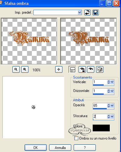 Effetti>Effetti 3D>Sfalsa ombra, con i seguenti settaggi: